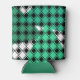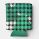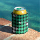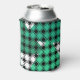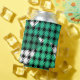 Esta lata tem um design moderno do século médio de diamantes negros sólidos traços de diamantes negros dentro com triângulos em tons de mariscos verdes sob eles, todos num campo de branco.