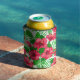 Design de padrão aquoso com flores de hibisco e palmeiras