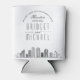 Ajude seu convidado de casamento a manter suas mãos secas, suas bebidas legal e suas bocas ralando. Este único hino de linha do horizonte de deco pode ser mais legal, especificamente adaptado ao seu futuro casamento ou reunião familiar na bela cidade de Houston, Texas. Eles apresentam uma saudação no topo, seguida do nome da cidade e da data de reunião de casamento/família. A isto seguem-se os nomes da noiva e do noivo ou da família numa fonte única e complementar de estilo aberto. Em direção ao fundo da lata resfriada é uma ilustração estilizada da cidade em si e do seu horizonte único para manter os olhos de seus convidados entretidos enquanto bebe suas bebidas.