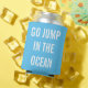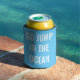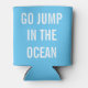 Férias caseiras de praia ou latas de condomínio são a cor do mar. Com um fundo azul e uma tipografia ousada extra "Vai pular no oceano" cobrir a maior parte de um lado do cobrir mais frio. Entra no espírito do fim de semana com esta engraçada caixa branca.