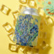 Irlandeses (1890) Vincent van Gogh. Uma vida positiva e adorável. Grande vaso amarelo com um buquê de pisos azuis sobre fundo amarelo. Reprodução de famosas imagens de arte no dominio público.