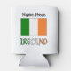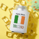 A bandeira irlandesa em faixas verticais verdes, brancas e laranja, com a palavra IRLANDA, também nas cores da bandeira. Acima, um lugar para um nome: o seu para criar um toque personalizado, ou o de outra pessoa para um presente personalizado.