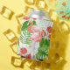 Design de padrão aquoso com flores e aves flamingos, monstera e palmeiras.
