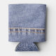 Porta-lata Jeans azuis: textura pormenorizada da costura.