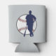 Este é um resfriador atraente para aquela cara que é um verdadeiro fã de baseball. Ele apresenta um jogador de baseball azul e uma silhueta de taco contra uma imagem de bola branca completa com costura vermelha. Seu nome ou outro texto está em vermelho na frente, enquanto o verso tem apenas o jogador de beisebol e a imagem da bola. Tudo é colocado em uma cinza. *Este design usa imagem © Graphics Fatory.com*