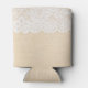 Porta-lata Lace branco sobre design de tecido.