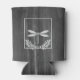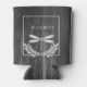 Mantenha suas bebidas frias no verão com uma lata de bebida de prata personalizada. O design de resfriamento apresenta uma libélula vibrante adornada com folhagem delicada contra um fundo de madeira rústica de cinza escura. Itens de presentes adicionais disponíveis com este design, bem como uma variedade de cores.