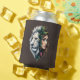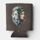 Leão e Mulher Brancas - Retrato Místico de Força e Beleza. Um retrato cativante que funde o poder majestoso de um leão branco com a delicada beleza de uma mulher. O lado esquerdo revela a cabeça orgulhosa do leão com o seu homem que flui, enquanto o lado direito mostra uma mulher com pele macia, cabelo castanho e lábios vermelhos ousados. Folhas verdes e pequenas flores conectam as duas metades, simbolizando harmonia entre natureza, força e feminilidade.