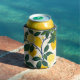 O padrão apresenta uma design viva e vibrante com limoeiros exuberantes. As ramificações são enfeitadas com limões amarelos maduros, alguns dos quais são fatiados para revelar seus interiores suculentos. Os limões estão cercados por folhas verdes profundas, que contrastam lindamente com o fundo quente e creme. O estilo geral é ousado e estilizado, com linhas limpas e um sentido de simetria, criando uma estética nova e alegre que evoca uma vibração mediterrânica.