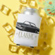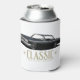Esta é uma renderização de um carro clássico negro americano com gráficos de estilo vintage em segundo plano para um olhar retrô.