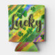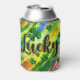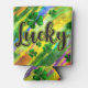 Esse vibrante pode resfriar um fundo colorido, listrado, com tons de verde, amarelo, laranja e azul. A palavra "Sortudo" aparece de forma destacada em letras negrito, pretas, brilhantes. Ao redor do texto estão várias camarões verdes e estrelas amarelas cintilantes, acrescentando um toque festivo e alegre. Esta design é perfeita para celebrar Ruas. Dia de Patrick ou trazer um pouco de sorte para qualquer ocasião.
