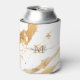 Modern Luxurious Elegant Script Monogram Monogrammed Name White Gold Marble Can Cooler