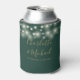 Um elegante cooler de garrafa de casamento em verde esmeralda e dourado com lindas luzes de corda, nomes em letreiro estiloso e data especial em tipografia moderna. Criado por Thisisnotme©