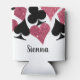 Deixe aquela lata com um cooler de lata "Mãe da Noiva" totalmente personalizado, apresentando uma dispersão de naipes em brilho rosa falso e preto cintilante com texto personalizado com o nome dos membros do grupo da noiva. Reúna as garotas para celebrar a futura noiva com um fim de semana na sortuda Las Vegas ou simplesmente uma noite fora ao estilo Vegas!