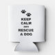 Este item exibe duas impressões de pata juntamente com o texto "Manter Calmo e Resgate Um Cachorro". Este é um excelente para donos de cães, voluntários de abrigo, salvadores de animais e defensores de animais.