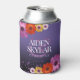Torne seu dia especial em uma celebração inesquecível com este elegante porta-lata temático floral, que apresenta letras brancas elegantes com confetes lavanda roxo e guirlandas de margaridas africanas coloridas em um fundo de roxo violeta a preto. Personalize com os nomes dos noivos e a data do casamento. O verso mostra o mesmo design. Um ótimo favor para os convidados e uma lembrança maravilhosa para temas de casamento florais!