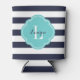 Monograma de tendências em forma de cuta ou refrigerador de frasco com padrão de banda náutica pré-definida. Personalize-o com um monograma personalizado ou outro texto em um quadro quatrefoil quic. Clique em Personalizar para alterar o texto e as fontes para criar um presente exclusivo para as suas damas de honra e festa de casamento! Entre em contato comigo antes de pedir para personalizar padrões ou design para coordenar com qualquer cor do casamento.