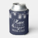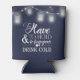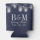 Este casamento personalizado apressado pode resfriar a frase "Para ter e segurar para manter o seu frio de beber" em um fundo azul marinho coberto de potes e luzes de cordas brilhantes. Personalize o outro lado com suas iniciais, nomes e data de casamento. A cor de fundo é perfeitamente personalizável para corresponder às cores do seu casamento.