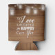 Este casamento costume rústico pode conter a frase "Amar, rir e feliz para sempre" em um fundo de madeira em cascata aflitos com potes de pedras brilhantes e luzes de cordas. Personalize o outro lado com suas iniciais, nomes e data de casamento.