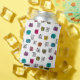 Este refrigerador tem uma design moderna do século médio de labirintos dispersos, alguns com bolhas coloridas debaixo deles.