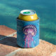 Pintura de aquarela original de Sandra Gale, com um grande peixe-geleia roxo ou Medusa (macho) com longos tendões flutuantes que flutuam entre as bolhas no mar profundo. design de excelente para qualquer um que ama criaturas marinhas e os lugares profundos dos nossos oceanos. Faz um presente de excelente para mergulhadores, surfistas, vagabundos de praia ou conservacionistas da natureza também!