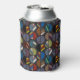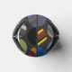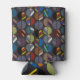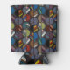 Esta lata tem uma design moderna do século médio de metades ovais, algumas sólidas e algumas listradas, em cores masculinas, num campo de cinzas escuras.
