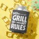 Diversão da citação do barbeque que diz: "Meu Grill Minhas Regras", com um garfo de churrasco e espátula. Clique em "Personalizar" para alterar a imagem e a cor de fundo! | Imagem de Badea Mihai | Estoque de calor. ID da imagem: 1742273987 | Shutterstock® - Todos os direitos reservados.