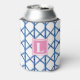 Porta-lata Monograma Azul Preppy com Padrão de Bambu Treliça