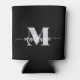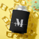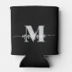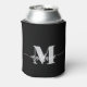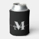 Monograma elegante em sua lata pessoal mais legal. Fundo preto com escrita branca e um Monograma prateado.