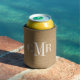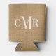 Uma lata de pré-disquete ou um refrigerador de garrafa personalizado com um monograma clássico de 3 letras em um fundo falso de burlap. Clique em Personalizar para alterar fontes e cores de texto ou adicionar outro texto e imagens para criar um tipo de design. Podemos combinar as cores do casamento. Favoritos de casamento admiráveis e únicos!
