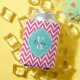 Porta-lata Monograma de Chevron Rosa-Quente e Turquesa