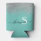 Porta-lata Monograma Rosa Prata e Azul Turquesa com Brilho