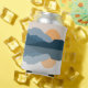 Abstrato de ilustração colorida do nascer do sol com montanhas azuis refletidas no lago