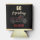 Motorcycle 60th & Legendary Birthday Biker Party Can Cooler. Bold motorcycle-themed birthday party! Featuring a striking vintage motorbike illustration and a black background, this design is perfect for any biker fan. Personalize with your name. Ideal for milestone birthdays, biker club parties, or anyone who loves life on two wheels.