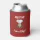 Cabeça de chef com chapéu, corcunda vermelha e texto personalizado.