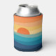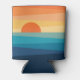 Abstrato ilustração do nascer do sol colorido (amarelo, laranja, azul, turquesa) pelo mar com linhas diagonais e decoração solar