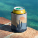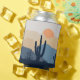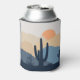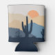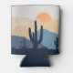 Deserto mexicano na ilustração do nascer do sol, montanhas e decoração de cacto em cores azul marinho, laranja, azul e bege em fundo de cinza pastel