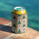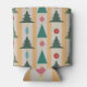 Este refrigerador tem design moderna do século médio de árvores de Natal e ornamentos pendurados em uma terra com fundo de ouro e prata.