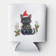 Porta-lata Natal de Gato Negro Papai Noel Engraçado Gato de C