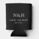 Casamento moderno pode resfriar favores apresentando um simples e mínimo design preto com seu monograma em uma letra em negrito juntamente com seus nomes em um roteiro elegante de letra e sua data de casamento.