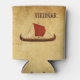 Uma nave longa Viking com uma vela vermelha vista no perfil do lado direito e sobreposta a uma imagem de fundo de papel antiga. A leitura do texto "madeira esculpida", "VIKINGAR" (Velhos Norse - VIKINGS), também aparece. Personalize adicionando seu próprio texto adicional no verso.