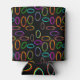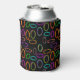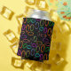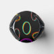 Esse refrigerador tem um design geométrico de grupos de três ovais em cores neonatais espalhados em um campo de preto.