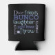 Maneira divertida de manter sua bebida enlatada favorita legal e refrigerada na noite de Bunco. Design de estilo tipografia moderno em azul e cor púrpura. O fundo preto ajuda a pop de texto! Dice, Amigos, Bunco, Rir, Roll, Bons Tempos, Jogar e Chat, todos pensam bem sobre Bunco! A design também inclui um coelho sortudo. Excelente para jogadores Bunko também.