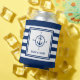 Seu nome personalizado do barco (Capitão Fileira ou Texto Personalizado), com uma Âncora Náutica Personalizada e Compass em uma lata de marinho Striped Freser.