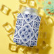Este produto tem um design intricado com fundo azul escuro e padrões ornamentais brancos. O design lembra os estilos tradicionais de cerâmica ou porcelana, que podem interessar a quem aprecia a estética clássica ou vintage.