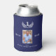 Uma lata mais fria para o melhor pai do mundo, pai. Um fundo azul marinho. Decorado com uma coroa branca de vitória e número 1. Personalize e adicione uma foto do seu pai e seus nomes (nome da criança)