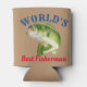 Para o seu pescador ou pescadora favorito... Este vamos-design sabe disso, eles são o "Melhor Pescador do Mundo". O design aparece na parte frontal e traseira do Can Cooler. Um design divertido para um aniversário, aposentadoria e Dia de os pais.