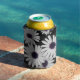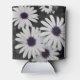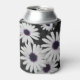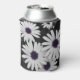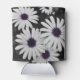 Esta imagem mostra um aglomerado de margaridas com pétalas brancas e polos púrpuros-azuis em greve. O fundo e a folhagem estão em preto-e-branco, criando um efeito colorido seletivo que enfatiza as cores vívidas dos centros das flores. O contraste entre os arredores dessaturados e as delicadas flores dá à imagem uma qualidade artística, quase surreal, destacando a beleza e a complexidade da natureza.
