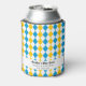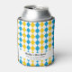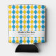 Oktoberfest Can Cooler personalizou seu texto personalizado e sua tipografia gótica no estilo medieval. A design apresenta um padrão lozenge de diamante em Bayern azul, branco e amarelo. Ideal para uso pessoal ou promoção comercial.
