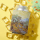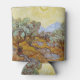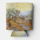 Oliveiras com céu amarelo e sol. Vincent Willem van Gogh. Paisagem em tons amarelo quente. Grande jardim com árvores grandes. Montanhas no fundo. Há um grande sol brilhante no céu. Reprodução de famosas imagens de arte no dominio público.